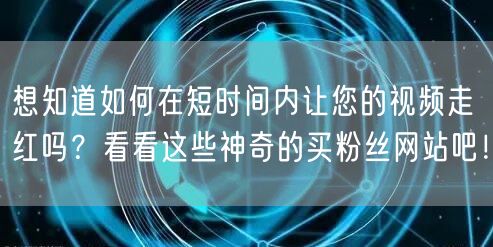 想知道如何在短时间内让您的视频走红吗?看看这些神奇的买粉丝网站吧!