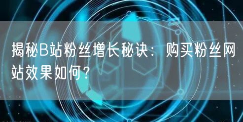 揭秘B站粉丝增长秘诀:购买粉丝网站效果如何?