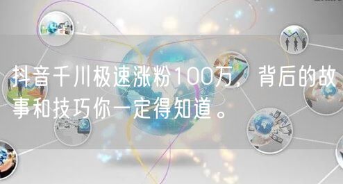 抖音千川极速涨粉100万,背后的故事和技巧你一定得知道。