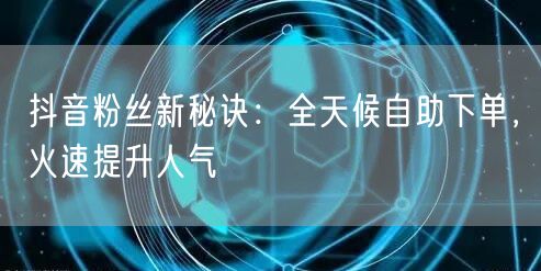 抖音粉丝新秘诀:全天候自助下单,火速提升人气