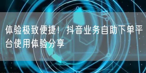 体验极致便捷!抖音业务自助下单平台使用体验分享