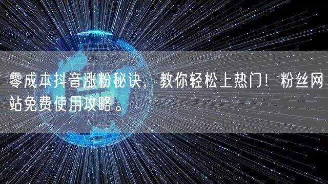 零成本抖音涨粉秘诀,教你轻松上热门!粉丝网站免费使用攻略。