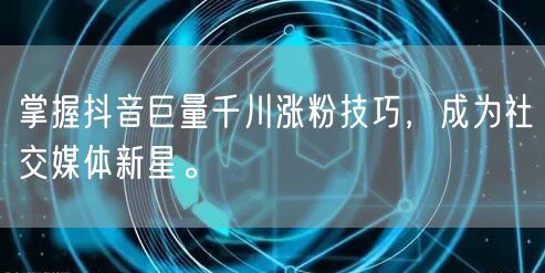掌握抖音巨量千川涨粉技巧,成为社交媒体新星。