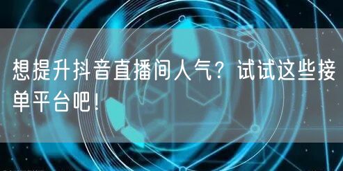 想提升抖音直播间人气?试试这些接单平台吧!