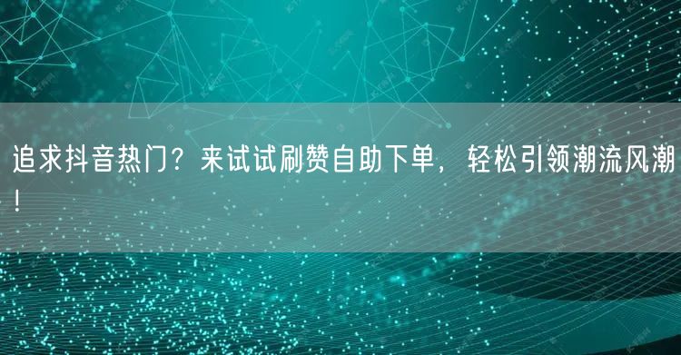 追求抖音热门?来试试刷赞自助下单,轻松引领潮流风潮!