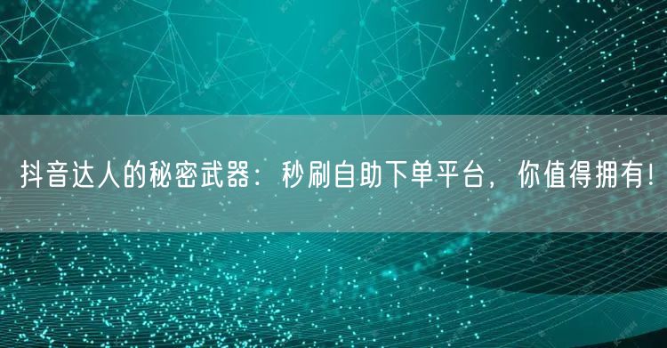 抖音达人的秘密武器:秒刷自助下单平台,你值得拥有!