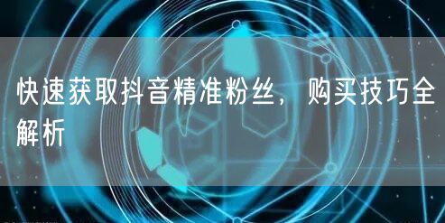 本文为您详细解析了快速获取抖音精准粉丝的购买技巧,希望对您在抖音营销中取得成功有所帮助。结合本文所述策略,不断优化您的抖音营销方式,轻松获取更多精准粉丝,实现抖音营销目标。