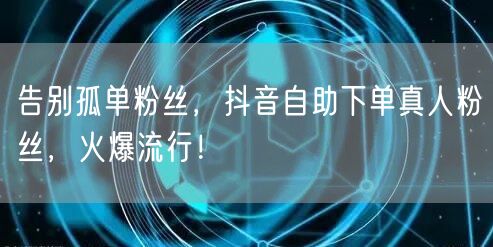 通过抖音自助下单真人粉丝,我们可以快速增加抖音粉丝数量,提升个人或品牌的知名度。在这个数字化时代,让我们一起告别孤单粉丝,引领潮流,共同创造更美好的未来!