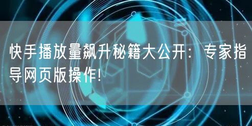 快手播放量飙升秘籍大公开:专家指导网页版操作!