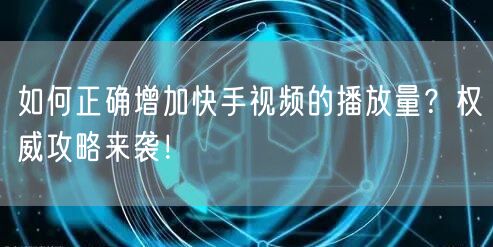 如何正确增加快手视频的播放量?权威攻略来袭!