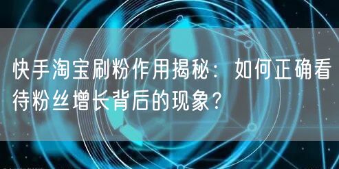 快手淘宝刷粉作用揭秘:如何正确看待粉丝增长背后的现象?