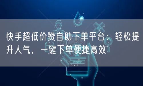 快手超低价赞自助下单平台:轻松提升人气,一键下单便捷高效