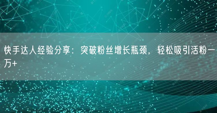 快手达人经验分享:突破粉丝增长瓶颈,轻松吸引活粉一万+