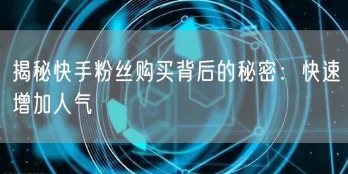 揭秘快手粉丝购买背后的秘密:快速增加人气