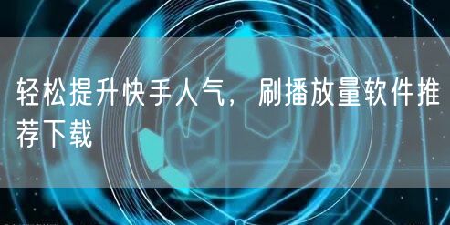 轻松提升快手人气,刷播放量软件推荐下载