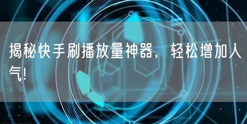 揭秘快手刷播放量神器,轻松增加人气!