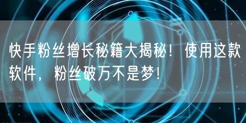 快手粉丝增长秘籍大揭秘!使用这款软件,粉丝破万不是梦!