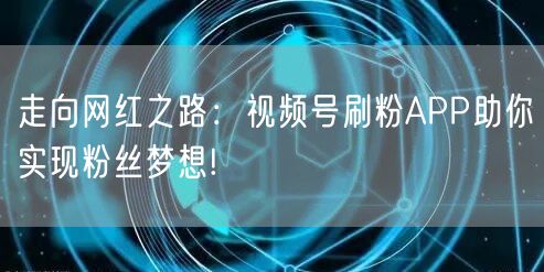 走向网红之路:视频号刷粉APP助你实现粉丝梦想!