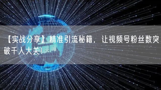 【实战分享】精准引流秘籍,让视频号粉丝数突破千人大关!