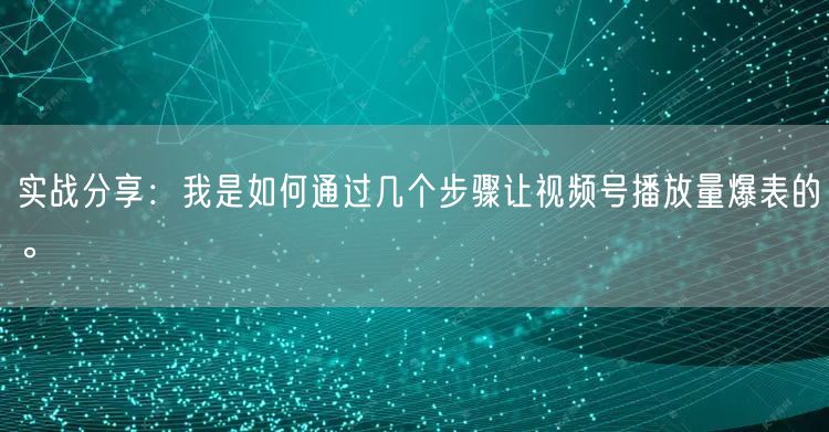 实战分享:我是如何通过几个步骤让视频号播放量爆表的。