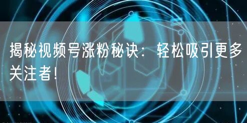 揭秘视频号涨粉秘诀:轻松吸引更多关注者!