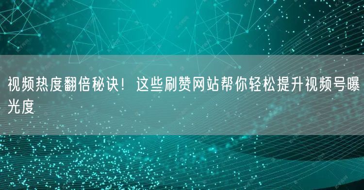 视频热度翻倍秘诀!这些刷赞网站帮你轻松提升视频号曝光度