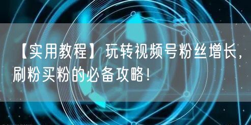 【实用教程】玩转视频号粉丝增长,刷粉买粉的必备攻略!