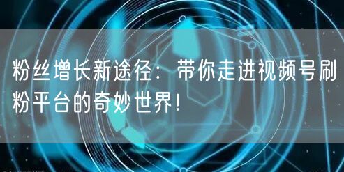 粉丝增长新途径:带你走进视频号刷粉平台的奇妙世界!