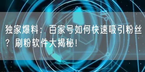 独家爆料:百家号如何快速吸引粉丝?刷粉软件大揭秘!