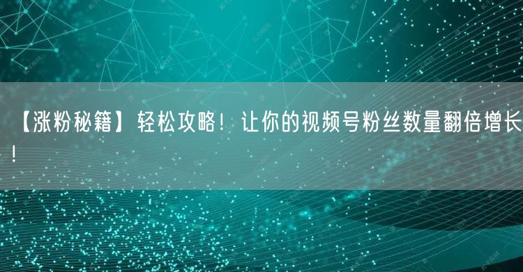 【涨粉秘籍】轻松攻略!让你的视频号粉丝数量翻倍增长!