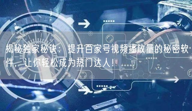 揭秘独家秘诀:提升百家号视频播放量的秘密软件,让你轻松成为热门达人!