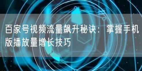 百家号视频流量飙升秘诀:掌握手机版播放量增长技巧