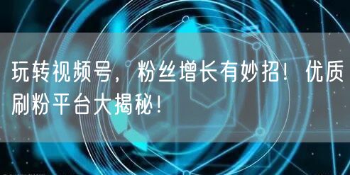 玩转视频号,粉丝增长有妙招!优质刷粉平台大揭秘!