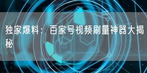 随着互联网的普及和社交媒体的兴起,视频内容已经成为人们获取信息、娱乐消遣的重要渠道之一。百家号作为一个汇集各类视频内容的平台,其视频的质量和数量都十分重要。而在这个竞争激烈的市场中,如何提升视频的曝光和点击率成为了众多创作者关注的焦点。今天,我们将独家爆料一款百家号视频刷量神器,带你一起揭开它的神秘面纱。