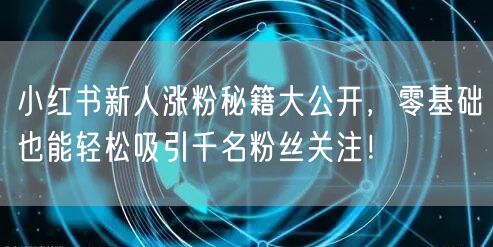 小红书新人涨粉秘籍大公开,零基础也能轻松吸引千名粉丝关注!