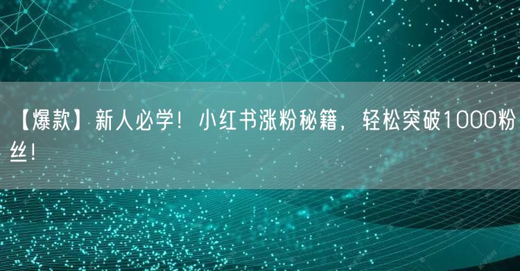 【爆款】新人必学!小红书涨粉秘籍,轻松突破1000粉丝!